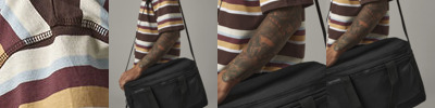 100% Recycled 600D polyester. PVC-free. PEVA lining – BPA-free. Food-safe, fully insulated main compartment. Zipped main compartment. Zipped front pocket. Stretch mesh side pocket. Wipe-clean interior. Internal water bottle/ice block holders. Twin carry handles. Cord zip pulls with reflective detailing. Adjustable webbing shoulder strap. TearAway label for easy rebranding.