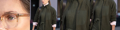 DETAILS: Two chest pockets. Hidden side pockets. Tone-in-tone buttons.