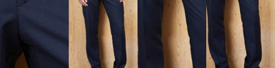 66% polyester/34% viscose micro twill. Part elasticated waistband. Belt loops. Zip fly with button over. Two side pockets. Two rear welt pockets. Two back darts. Unbranded size label. Co-ordinates with Jacket 03165, Waistcoat 03167 and Skirt 03168.