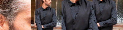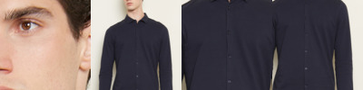100% organic combed cotton. Classic collar. Self colour buttons. Back yoke. Two button adjustable cuffs with button on cuff gauntlet. Curved hem. Unbranded size label.
