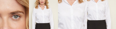 100% cotton micro twill. Non-iron fabric. Classic collar. Self colour buttons. Back yoke. Bust and back darts. Two button adjustable cuffs with button on cuff gauntlet. Curved hem. Unbranded size label.