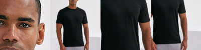 Organic cotton fabric. Crew neck. Short sleeve. Lightweight. Twin-needle stitching on hem and arms. The product contains no branded neck or waist label. Removable kimble or looped garment tags. The inner seam label holds important product information on one label with a second label containing brand information which can be cut-away.