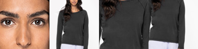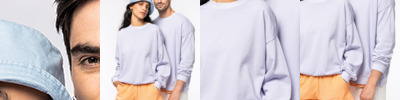 100% organic ringspun combed cotton. French terry inner. Drop shoulder style. Herringbone taped neck. Half moon back yoke. Puff sleeves. 1x1 ribbed cuffs and hem. Coverseamed around collar, armholes, cuffs and hem. Tag free. Garment dyed after assembly, colours may vary slightly.