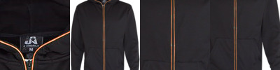 6.5 oz.; 100% Polyester; EL (Electroluminescent Lighting) lit piping on zipper placket and hood; Three light-up settings; Batteries not included; Set-in sleeves and pouch pocket;