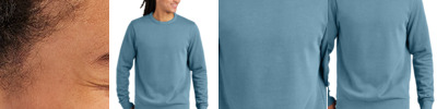 * Ventura Suede Knit 6.34-ounce * Solids, 89% recycled polyester/11% spandex * Heathers, 45% recycled polyester/44% polyester/11% spandex * Wicks moisture * Tag-free label * Crew neck with V stitching at neckline * Set-in sleeves