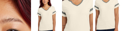 LST6043 Women's Halftime Stripe Long Sleeve V Neck Tee