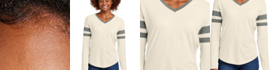 * 100% polyester wicking knit with color secure(r) technology that helps prevent dye migration * 90% polyester/10% spandex wicking mesh inserts with color secure(r) technology that helps prevent dye migration * Wicks moisture * Ladies' fit * Tag-free label * Low profile tapered collar * Raglan sleeves * Modified dropped back hem