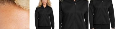 * Dry-Excel(tm) 100% polyester double-knit * Dry-Excel 92% polyester/8% spandex mesh inserts * Wicks Moisture * Woven label * Front zipper * Set-in sleeves * Front zippered pockets * Open bottom * Dropped tail hem