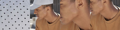 - 60/40 cotton/polyester front panels; 55/43/2 polyester/rayon/spandex front panels (Heathers); 100% polyester mesh mid and back panels