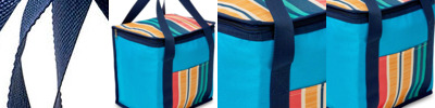 Moroccan-design cool bag with 12-litre capacity. Insulated foil inner. Tough exterior fabric. Fabric carrying straps with zip fastening.