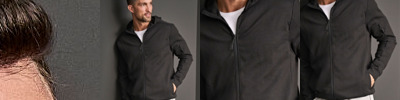- Softshell jacket in bounded fabric with stretch capabilities.