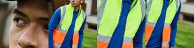 100% polyester. Lightweight knit fabric. Yellow, orange and yellow/orange conform to EN ISO 20471: 2013 + A1: 2016 class 2. All other colours conforms to EN ISO 20471: 2013 + A1: 2016 class 1. RIS-3279-TOM (orange colourway only). Contrast bound armholes. Front zip closure. Two reflective bands around the body and one over each shoulder. ID pocket on left chest. Radio loop. Media pocket. Two front pockets with flaps. Cut out label.