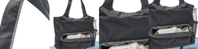 - Note: Tote ships flat with matching pouch attached to loop via clip
