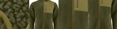 - Sherpa fleece: 100% recycled polyester. Contrast fabric: 50% recycled polyester, 50% polyester