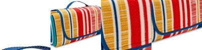 Textured stripe design fleece picnic blankets with carry handle. 100% polyester fleece with a water resistant backing. One size 130cm x 130cm .