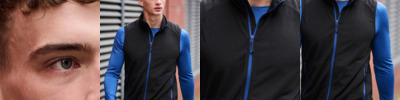 100% polyester Layerlite® micro fleece. Made from at least 30% recycled polyester. Unlined. Mini grid effect fleece. Bound elasticated collar, armholes and hem. Contrast low profile zip with chin guard and inner zip guard. Two contrast front zip pockets. Cut out label.