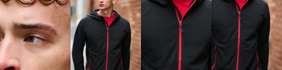 100% polyester Layerlite® micro fleece. Made from at least 30% recycled polyester. Unlined. Mini grid effect fleece. Grown on hood with stretch bound opening. Raglan sleeves. Full length contrast low profile zip, with chin guard and inner zip guard. Two contrast front zip pockets. Bound elasticated cuffs and hem. Cut out label.