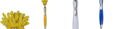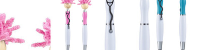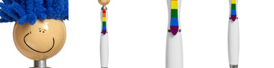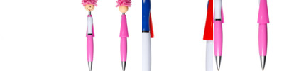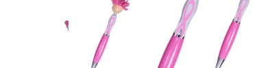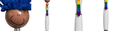 - Click-action ballpoint pen with smiley face, awareness ribbon shaped clip and mop-top hair